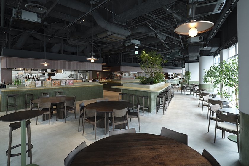 ニューヨークスタイルのピザやレバノン料理、メキシカン、ビリヤニなど国際色豊かな味が勢ぞろい。緑に包まれ、ゆったりと落ち着いて過ごすことのできるフードホールでは、ランチやディナーと共に、クラフトビールやワイン、ジンなど様々なお酒も自由に楽しめます。