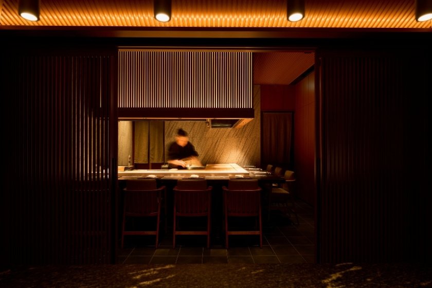 関西の豊かな自然が育んだ旬の食材を、鉄板のライブキッチンと鮨カウンターで贅沢に。