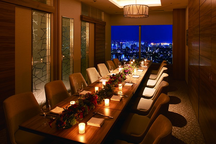 東京の街並みを眺望するレストランで