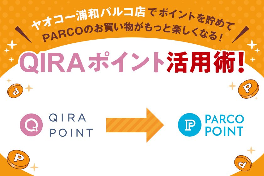 「ヤオコー浦和パルコ店」でのお買い物にて貯まったQIRAポイントを交換してパルコのお買い物をもっとお楽しみいただけるようになります。