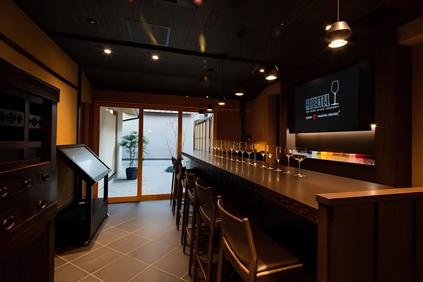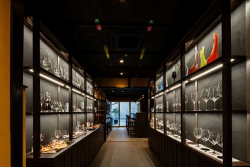 築105年の京町屋をリノベーションした「リーデル京都店」。歴史ある建物に新たな息吹を吹き込み、古き良き京町屋の「趣」を大切に残しながら、リーデルの現代的なエッセンスを加えた店内は、伝統とモダンが重なり合う特別な空間です。