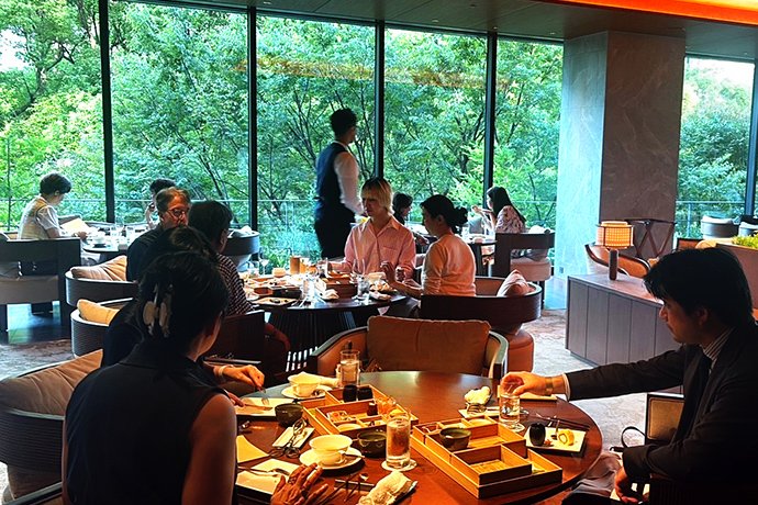 スペシャルプランに参加された30名の方は、久屋⼤通公園の美しい緑を望むホテル TIAD, Autograph Collectionの3階「The Lounge」にて、愛知県西尾市の抹茶や岡崎市の八丁味噌など和の食材を取り入れた季節限定「Japanese Afternoon Tea」を楽しまれました。落ち着いた空間でシャンパンと今回のイベントに合わせ特別アレンジを加えたアフタヌーンティをお召し上がりいただきながら、「このあとの鑑賞も楽しみです」といった期待のお声も聞かれました。