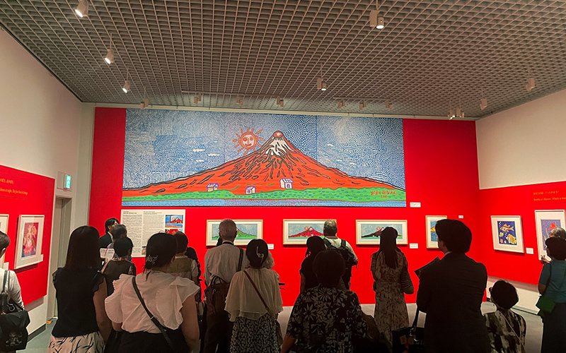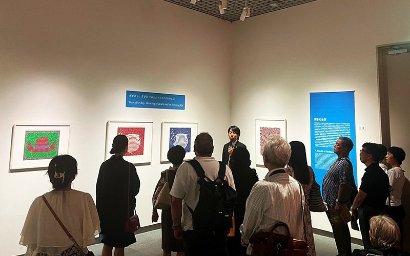 ご入場後は、本展の監修者であり松本市美術館で学芸員を務める渋田見 彰(しぶたみ あきら)さんに草間彌生の軌跡や作品の見どころをご紹介いただきながら展示を巡るギャラリートークがスタート。