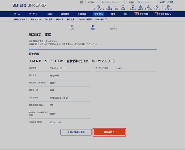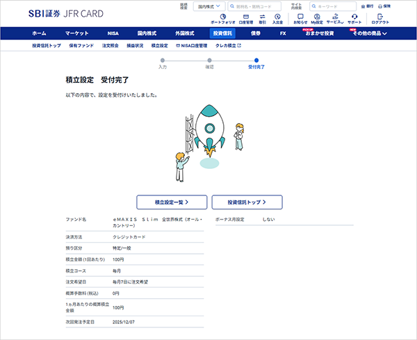 ⑤積立設定完了