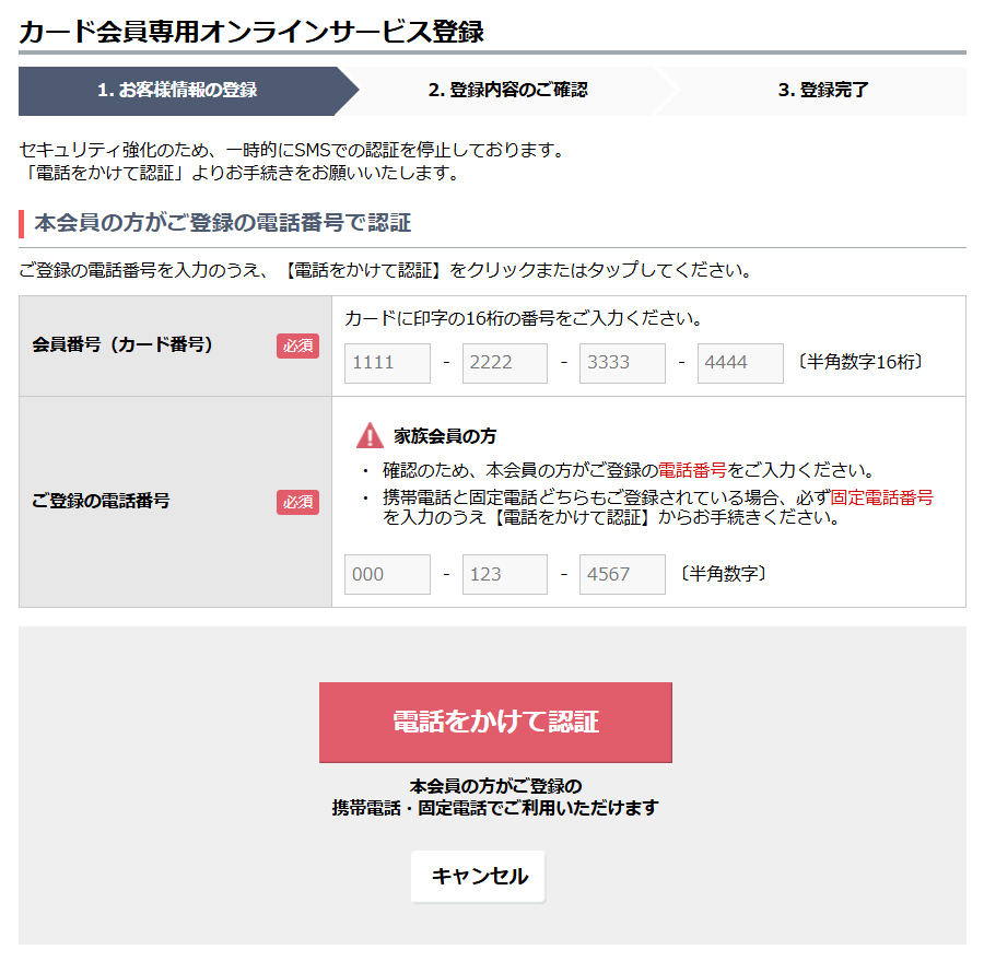 本会員の方の電話番号で認証し必要事項を入力後、「登録」をクリック。